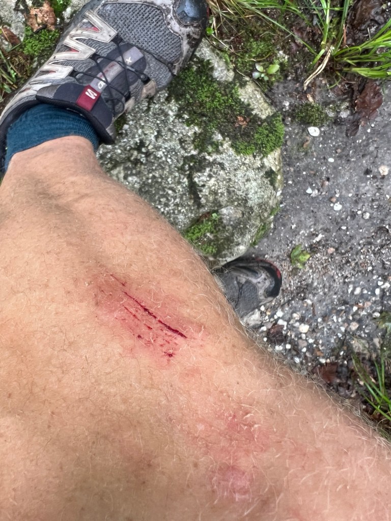Over the first 1,100 miles I only fell one time, somewhere around mile 500. Then last night I fell twice on my way down the side trail to get water, and this morning I took a hard fall that left me completely splayed out on the rocks. I’m fortunate in all three falls that I didn’t get hurt any worse.